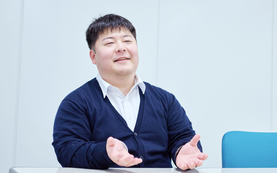 法学部卒。白黒はっきりつけたいと法学部に進んだものの、就職活動で進路変更し、自分が書いたプログラムがそのまま動くロジカルな仕事がしたいと情報分野へ。大きな夢を追いかけるより、小さな目標を毎年達成していく方が向いているという。プロジェクトを一人で運用できるようになりたいと日々努力を重ねている。